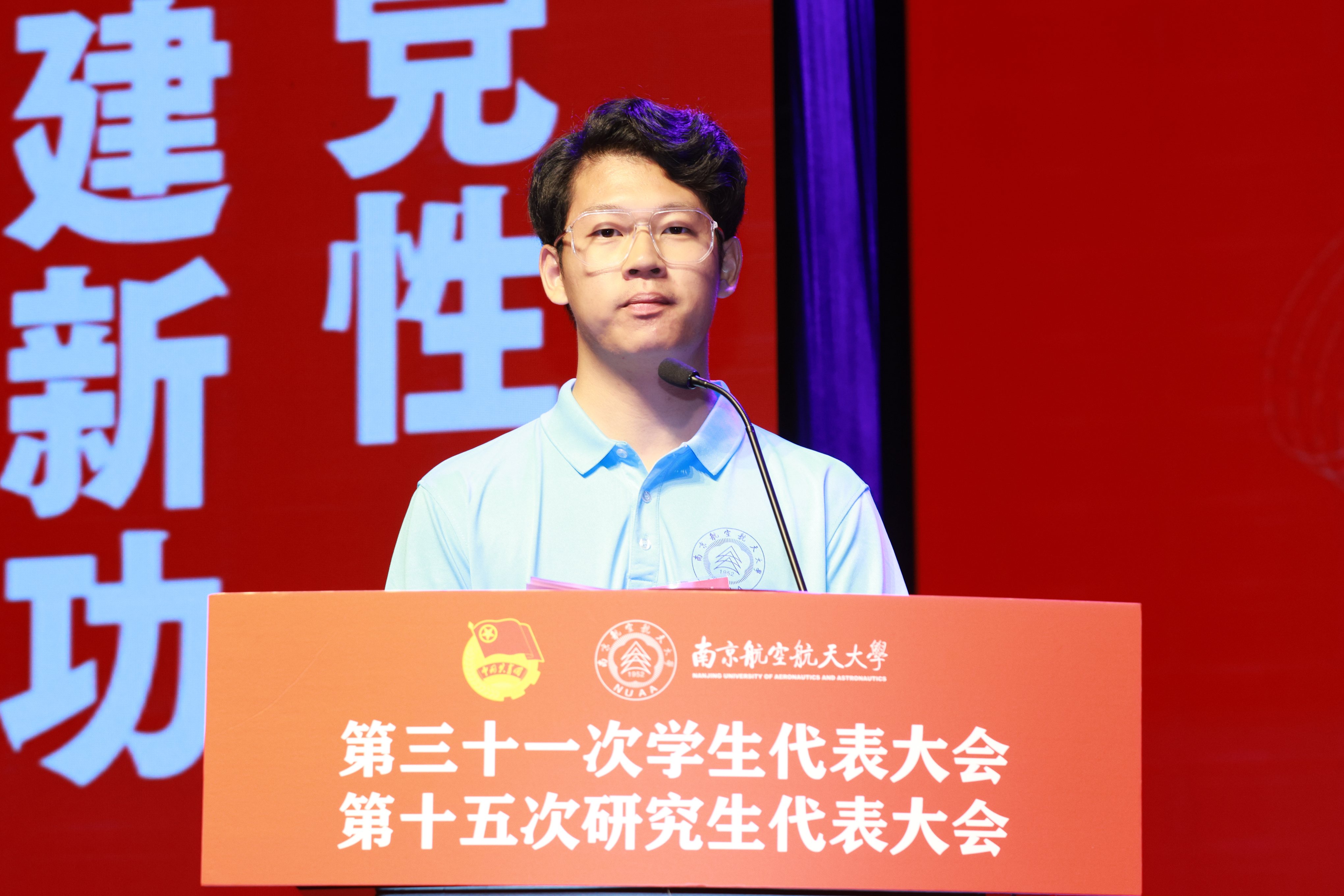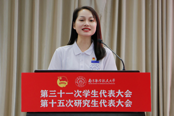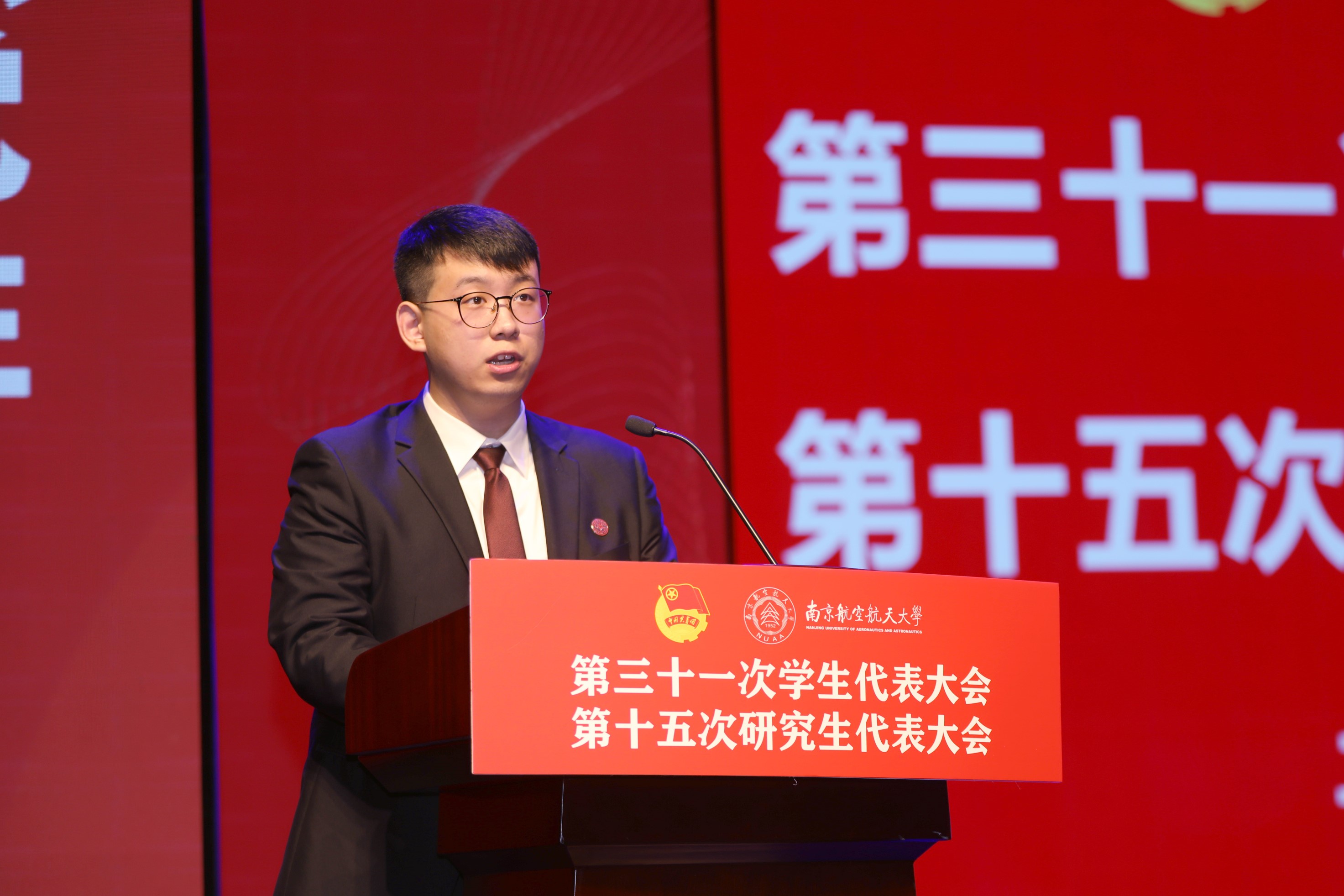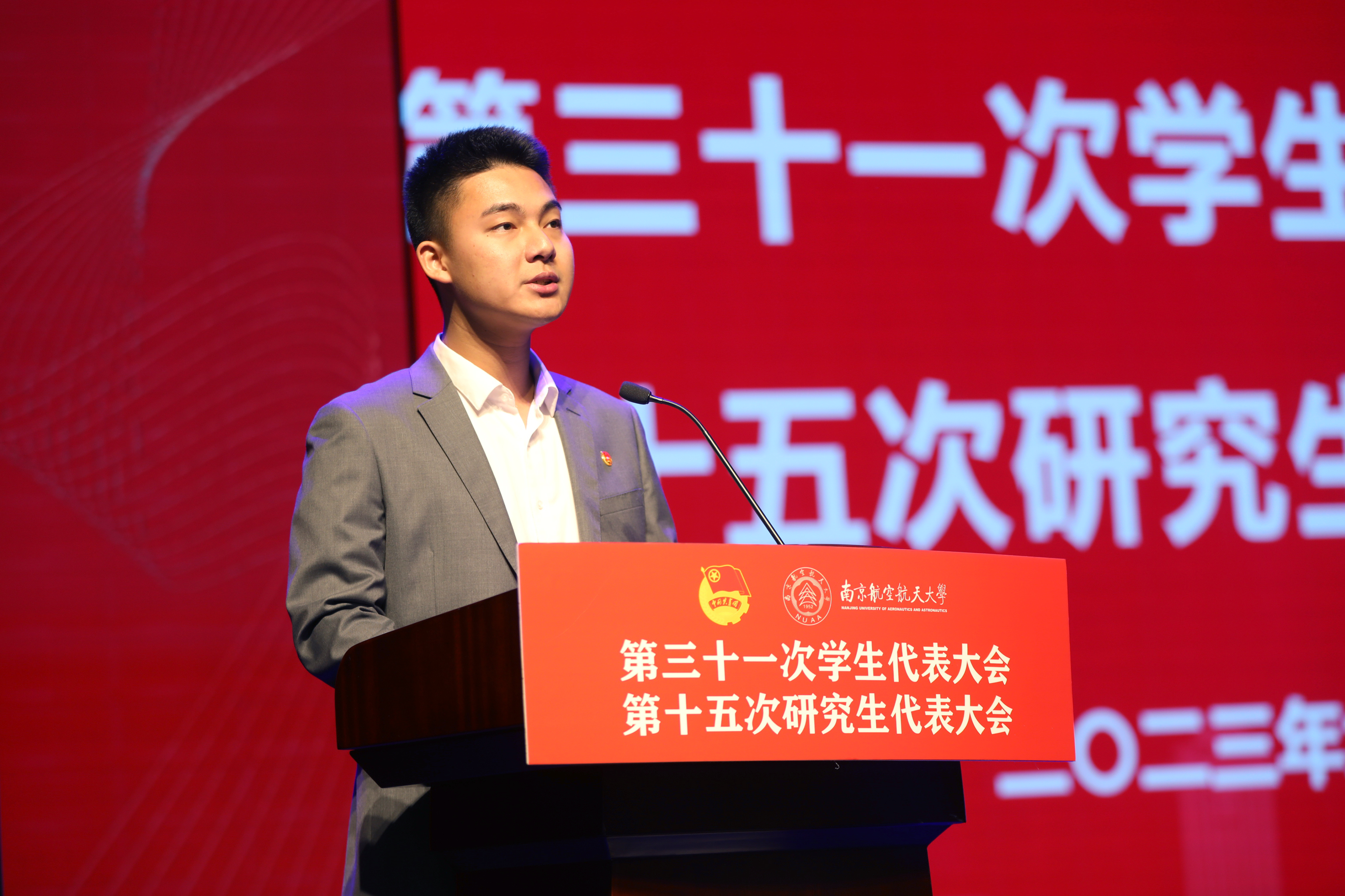 会上,学生会执行主席王锐韬同学代表第三十届学生会委员会作了题为《永远跟党走 奋进新征程 为加快建设航空航天民航特色鲜明的世界一流大学贡献青春力量》的工作报告;研究生会执行主席肖紫峰同学代表第十四届研究生会委员会作了题为《勇攀科技高峰 担当时代使命 在加快建设航空航天民航特色鲜明的世界一流大学征程中谱写青春篇章》的工作报告。