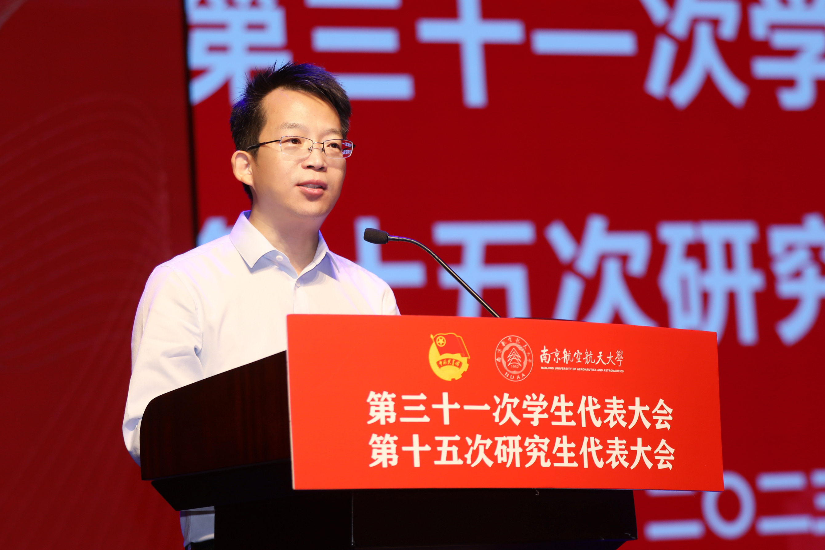 刘宇雷代表学校党委对本次学代会、研代会的召开表示祝贺,向参加会议的学生代表,并通过他们向全校广大青年学子致以美好祝愿。他表示,此次学代会、研代会是全校青年学生学习贯彻习近平新时代中国特色社会主义思想,认真落实学校第十七次党代会精神的重要举措。一年来,学校学生会、研究生会以加强对同学的政治引领为根本,以全心全意服务同学为宗旨,在强化学生思想政治引领、丰富第二课堂体系建设等方面发挥了重要作用。他希望广大南航青年一是要有理想,高举信仰火炬,在爱国奋斗中把牢青春航向;二是要敢担当,堪当复兴重任,在勇挑大梁中展现青春作为;三是要能吃苦,甘于自讨苦吃,在实践锤炼中磨砺青春意志;四是要肯奋斗,坚持永久奋斗,在勇毅前行中激发青春动能。希望各级学生会组织突出政治引领、服务同学、组织改革,不断提升同学满意度、大局贡献度和社会认可度。他要求各学院党组织要加强对学生会工作的领导和支持,为青年学生成长成才创造良好条件;各级团组织要履行好党赋予的重要职责,切实践行对学生会的具体指导责任。
