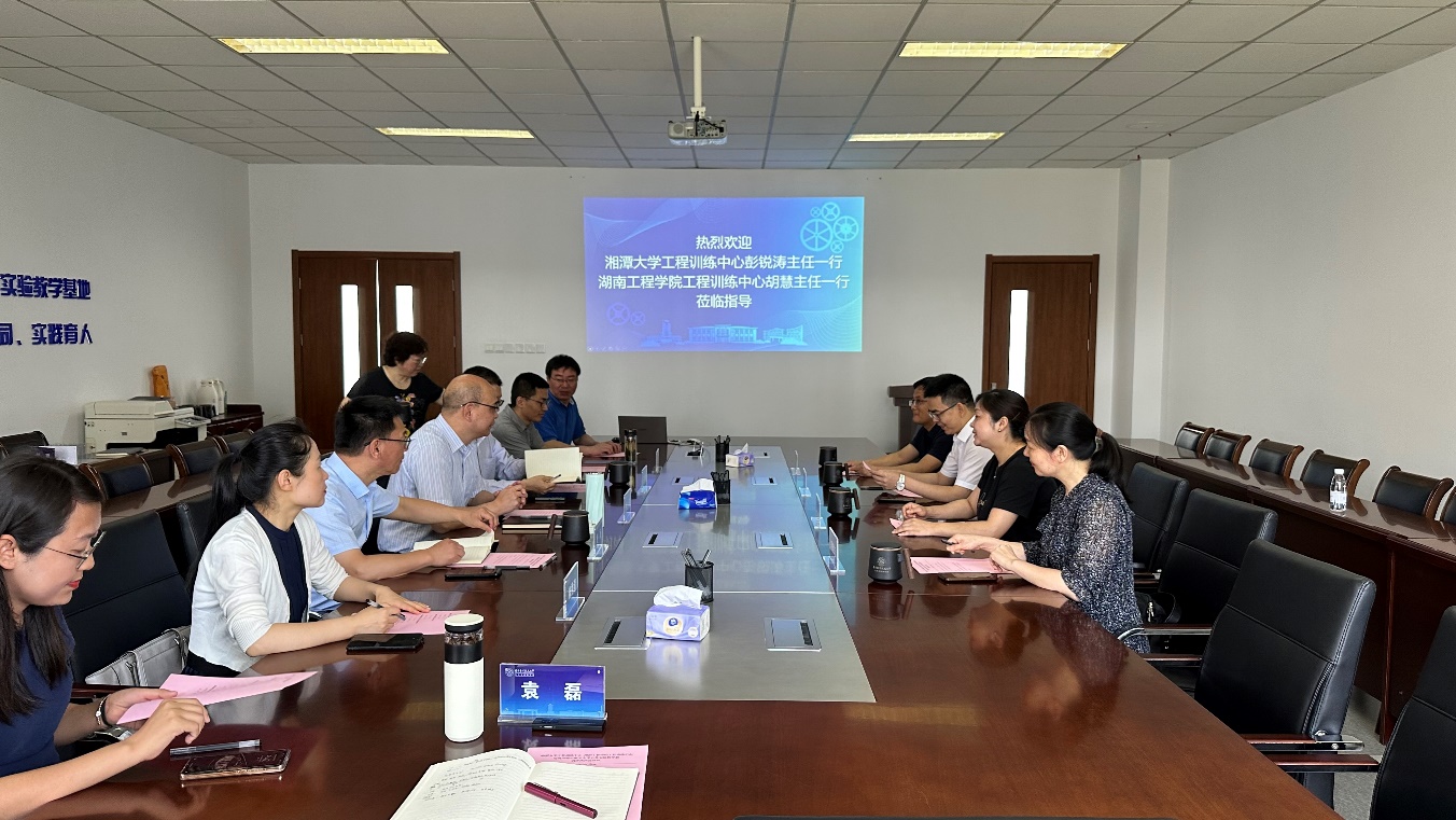 6月8日上午,湘潭大学工程训练中心主任彭锐涛、副主任周杨帆,湖南工程学院工程训练中心主任胡慧、副主任胡晓东等一行共同到访我校公共实验教学部调研交流工程训练中心建设情况。公共实验教学部党总支书记张庆,工程训练中心主任王化明、副主任施扬、教师代表葛亚楠,科创与竞赛工作办公室主任葛旺、教学管理办公室主任袁磊,以及机电学院机械制造及其自动化系副主任郝秀清、副教授陈妮参加了座谈交流。
