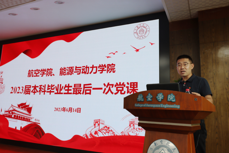 6月14日下午,航空学院、能源与动力学院2023届本科毕业生最后一次党课召开。马克思主义学院副院长何畏教授为毕业生党员授课,航空学院党委副书记杨杰主持。