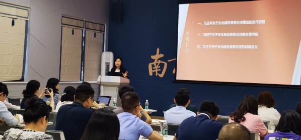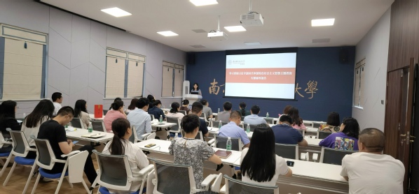 6月16日,机关党委在明故宫校区校友之家多功能厅组织“学习大讲堂”专题学习习近平关于社会主义文化建设的重要论述,本期邀请我校主题教育宣讲团、马克思主义学院副院长、博士生导师何畏教授作专题辅导报告。机关党支部党员代表,入党积极分子、发展对象及新发展党员40余人参加了此次学习。会议由机关党委书记焦宏图主持。