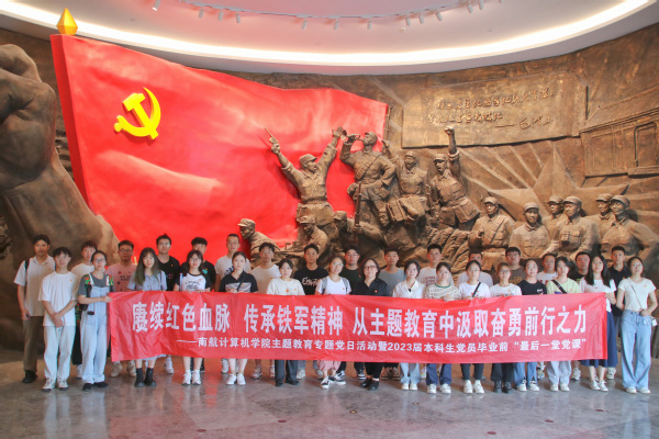 为深入开展学习贯彻习近平新时代中国特色社会主义思想主题教育,推动毕业生党员汲取奋斗力量、强化使命担当,6月16日,计算机学院赴新四军江南指挥部纪念馆开展2023届本科生党员毕业前“最后一堂党课”,学院党委书记刘健荣以及学院2019级本科生第一党支部、第二党支部党员参加活动。
