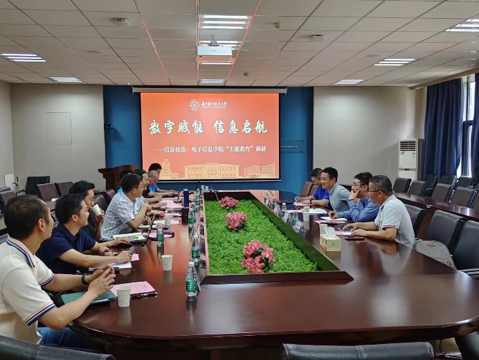近日,校信息化处和电子信息工程学院/集成电路学院联合开展主题为“数字赋能 信息启航”的主题教育调研。信息化处处长张焱、副处长王兴虎、副处长谢健、总工程师何安元,电子信息学院书记季海群、副院长朱岱寅、副院长刘伟强、副院长张小飞、院长助理刘冰及三个所属系教师代表刘维浩、毕辉、陈珂等参加了会议,会议由季海群主持。