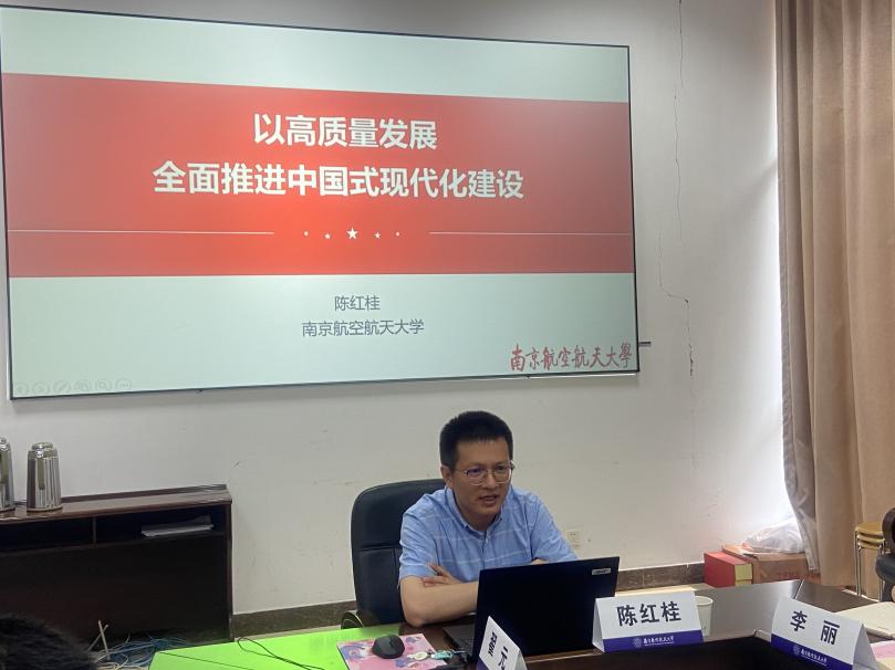 马克思主义学院副院长、副教授陈红桂以“以高质量发展全面推进中国式现代化建设”为主题开展学习贯彻习近平新时代中国特色社会主义思想主题教育专题辅导。他从关系思考、内涵特征、关键考量等方面阐明中国式现代化的基本问题,并从发展主体、要素、格局等五个维度系统分析全面建设现代化面临的风险挑战。结合复杂严峻的内外部形势,他强调,要以高质量发展为主线,坚持以经济建设为中心和两个“毫不动摇”,坚持要素市场化配置改革,坚持扎实推动共同富裕,加快构建新发展格局和新安全格局,以中国式现代化全面推进中华民族伟大复兴。