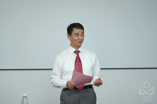 郭万林首先感谢学校、各职能部门以及各学院对前沿院的大力支持,更离不开所有教职工的辛勤工作和无悔付出,正是这些青年才俊毅然决然地从海外留学归来加盟前沿院,不遗余力地发挥各自的所学所长,才有了今天前沿院的发展壮大。他鼓励科研人员以“时不我待、只争朝夕”的精神状态,全身心投入到重大基础科学研究和关键核心技术攻关中,努力突破航空航天领域“卡脖子”难题。他指出,前沿院正在筹划建设江苏省水伏科学中心,推动基础科学与前沿技术的研究发展,殷切期盼前沿院的青年教师勇担使命、刻苦攻关,为服务国家重大战略需求和区域经济社会发展做出新贡献。