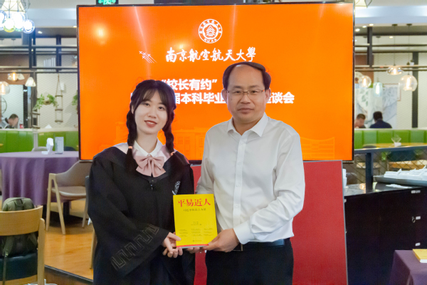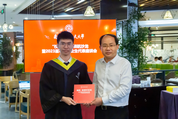 活动现场气氛热烈,暖意融融。单忠德与每位毕业生代表亲切交流,他对同学们圆满完成学业、实现了自己的梦想表示衷心祝贺。他希望同学们传承南航“红色基因”,继续坚定“蓝色梦想”,让青春年华在为国家、为人民的奉献中焕发出绚丽光彩。他寄语毕业生们,一是要永葆爱国情,把个人的事业与祖国的事业紧密相连,自觉将“小我”融入“大我”,以更大的格局想问题、做决策、办事情,真诚做人、厚道待人,在脚踏实地的奋斗中成就更加精彩的人生;二是要永怀感恩心,没有什么事情是应该的,要懂得珍惜、学会感恩,感恩为我们成长成才付出辛勤汗水的亲友和老师,以实际行动回报培养我们的社会和国家;三是要永铸奋斗志,时刻保持“生命不息、奋斗不止”精神,勇敢面对人生中的不顺心不如意,多吃苦、多奉献、多学习,让优秀成为一种习惯,全面增强自身本领,到祖国和人民需要的地方贡献智慧和力量。