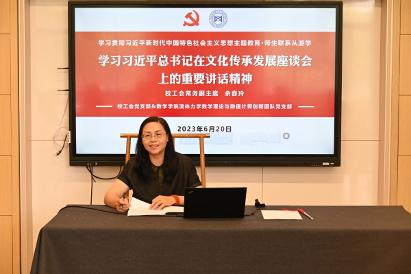 6月20日,端午节即将来临之际,为弘扬中华民族优秀传统文化,推进学习贯彻习近平新时代中国特色社会主义思想主题教育走实走深,数学学院师生纵向党支部——流体力学数学理论与数值计算创新团队党支部和校工会党支部在长空学院美育工作室开展联学共建。联学以“坚定文化自信,弘扬传统文化”为主要内容,师生齐聚话端午,共同感悟中华传统文化魅力。校工会党支部书记、常务副主席余春玲,副主席谢瑶,数学学院党委副书记周佼佼及两支部师生党员共同参加活动。