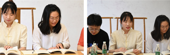 数学学院流体力学数学理论与数值计算团队党支部书记付培领读“推动中华优秀传统文化创造性转化、创新性发展”章节,她结合自身留学经历,谈到传承和创新中华传统文化需要青年人在思想上认同,不断进行融合创新,扩大中华文化的影响力。葛梦雪领读“讲好中国故事,传播好中国声音”章节,分享了关于青年学生如何讲好中国故事、展示立体中国形象的思考。