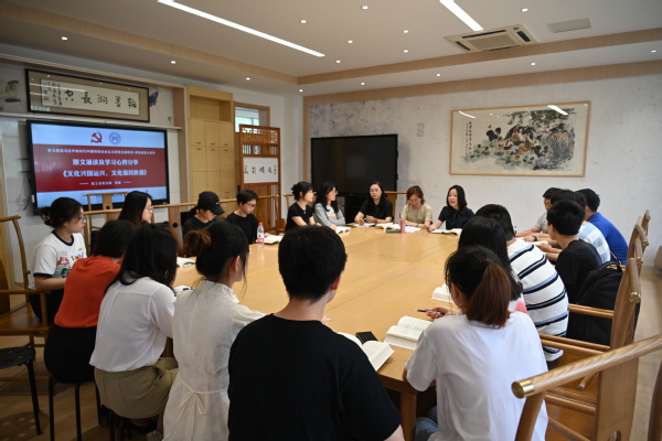 余春玲首先领学习近平总书记在文化传承发展座谈会上的重要讲话精神。她重点围绕“深刻认识中华文明的突出特性”带领两支部师生党员进行学习,详细阐释中华文明具有突出的连续性、创新性、统一性、包容性、和平性,鼓励师生党员们认真学习领会习近平总书记重要讲话精神,进一步坚定文化自信,担负起新文化使命,努力为推进中华民族现代文明和社会主义文化强国建设贡献力量。