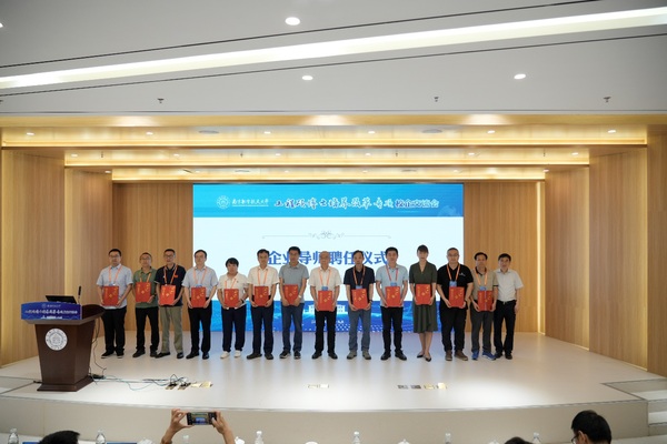 交流会现场举行了企业导师聘任仪式,施大宁为到场的企业导师代表颁发聘书。校企导师分别作交流发言。