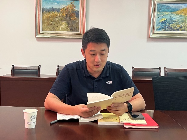 本次学习会聚焦新发展理念、自我革命、马克思主义中国化、调查研究等专题内容,坚持把读原著学原文悟原理摆在突出位置,从理论学习中汲取营养。陈兵、王宁、李鑫、黄圣君分别领学了《习近平新时代中国特色社会主义思想学习纲要(2023年版)》《习近平新时代中国特色社会主义思想的世界观和方法论专题摘编》《论党的自我革命》《习近平关于调查研究论述摘编》中的相关内容。
