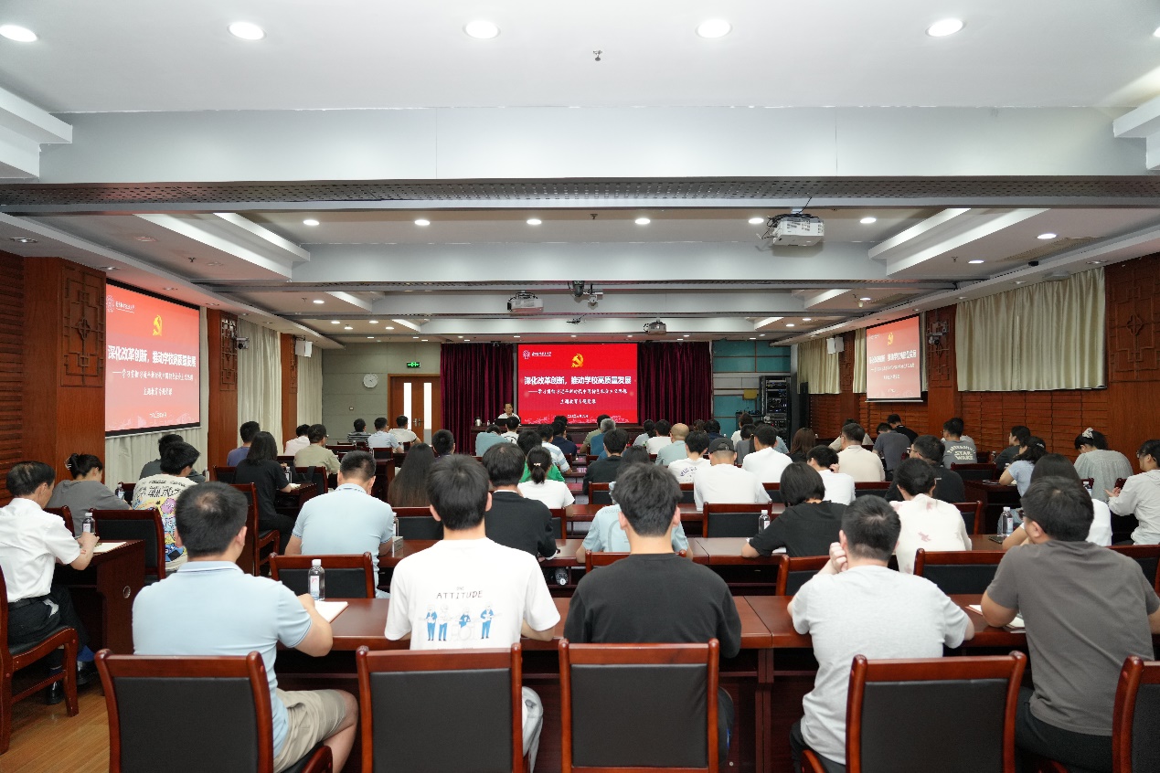 6月30日,在中国共产党成立102周年之际,校长单忠德以“深化改革创新,推动学校高质量发展”为题,为师生党员讲授学习贯彻习近平新时代中国特色社会主义思想主题教育专题党课,引导广大师生党员解放思想、改革创新,切实做到学思想、强党性、重实践、建新功,将焕发出来的学习热情转化为攻坚克难、干事创业的强大动力,持续推动学校事业发展不断实现新突破、取得新成效。