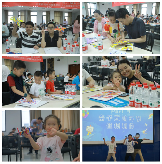 随后,小朋友们在志愿者和爸爸妈妈的指导下开始制作手工航模,现场氛围欢乐融洽。很快,一架架轻巧精美的航模飞机在小朋友们的手中成型,他们开心地试飞,与爸爸妈妈分享喜悦,共度甜蜜的亲子时光。