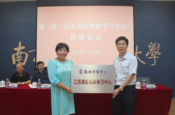 郭新宇指出,受省教育厅委托,江苏省高等教育学会高校成人教育研究会开展“江苏高校服务老年教育倍增行动计划”相关工作,去年设立了首批17个“银龄中心”,今年又新设了23个“银龄中心”,全省高校“银龄中心”已达到40个。她强调,“银龄中心”是省教育厅为满足我省深度老龄化阶段老年群体学习需求,依托高校自身丰富的办学资源条件,实施的一项重大民生工程。授牌高校一方面要遵照教育部《普通高等学校举办非学历教育管理规定》等要求,在办学场地、招生对象、收费标准、课程教学等方面做好良好保障;另一方面要充分利用高校学科特色优势,围绕老年人增长知识、丰富生活、陶冶情操、促进健康、服务社会等需求,打造一批“银龄中心”特色项目,为构建服务全民终身学习的教育体系、建设学习型社会、谱写“强富美高”新江苏现代化建设新篇章做出高校贡献。