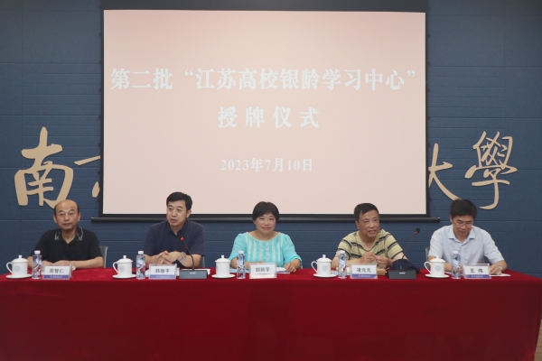 7月10日,第二批“江苏高校银龄学习中心”(简称“银龄中心”)授牌仪式在我校举行。省教育厅高教处二级调研员郭新宇出席活动,江苏高校银龄学习中心建设指导委员会主任凌元元、江苏省高教学会高校成人教育研究会部分理事长、部分高校继续教育学院、江苏高校银龄学习中心建设指导委员会成员等60余人参加了授牌仪式。仪式由江苏省高教学会高校成人教育研究会理事长、南京大学终身教育学院院长韩顺平主持。
