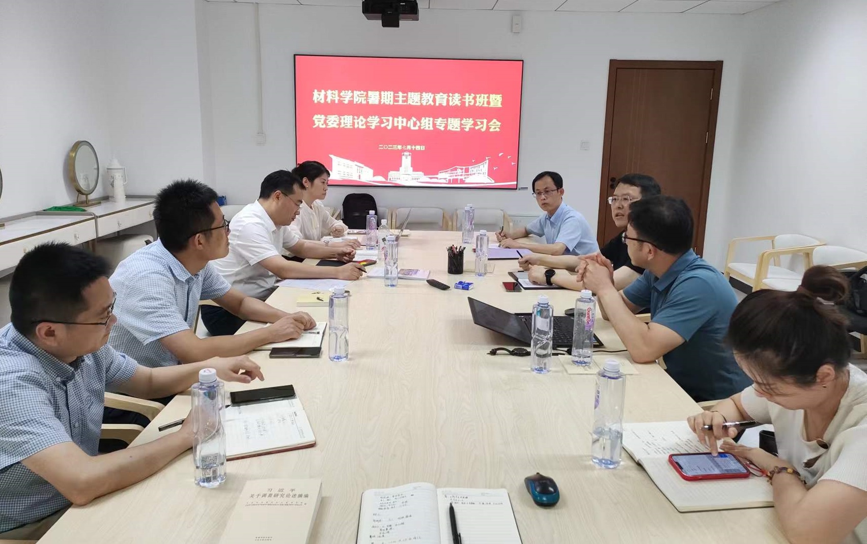 近日,材料学院党委召开暑期主题教育读书班暨党委理论学习中心组专题学习会。全体学院党委理论中心组成员参加会议,会议由学院党委书记石勇主持。