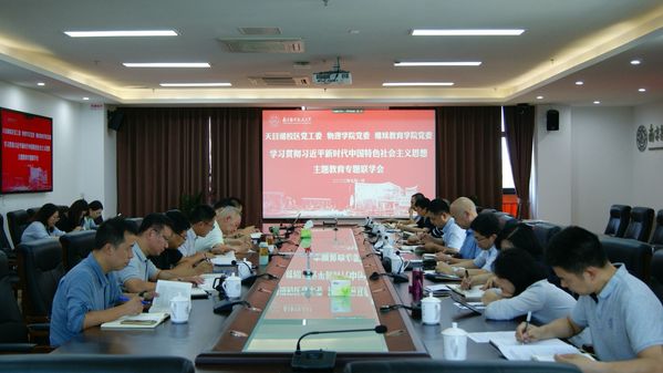 7月1日下午,天目湖校区党工委、物理学院党委、继续教育学院党委在天目湖校区综合服务楼开展学习贯彻习近平新时代中国特色社会主义思想主题教育专题联学,重点学习了《习近平新时代中国特色社会主义思想专题摘编》,并围绕“一校四区一港”发展思路展开了工作研讨。各单位领导班子成员、理论学习中心组成员参加学习。会议由天目湖校区党工委书记王伟华主持。