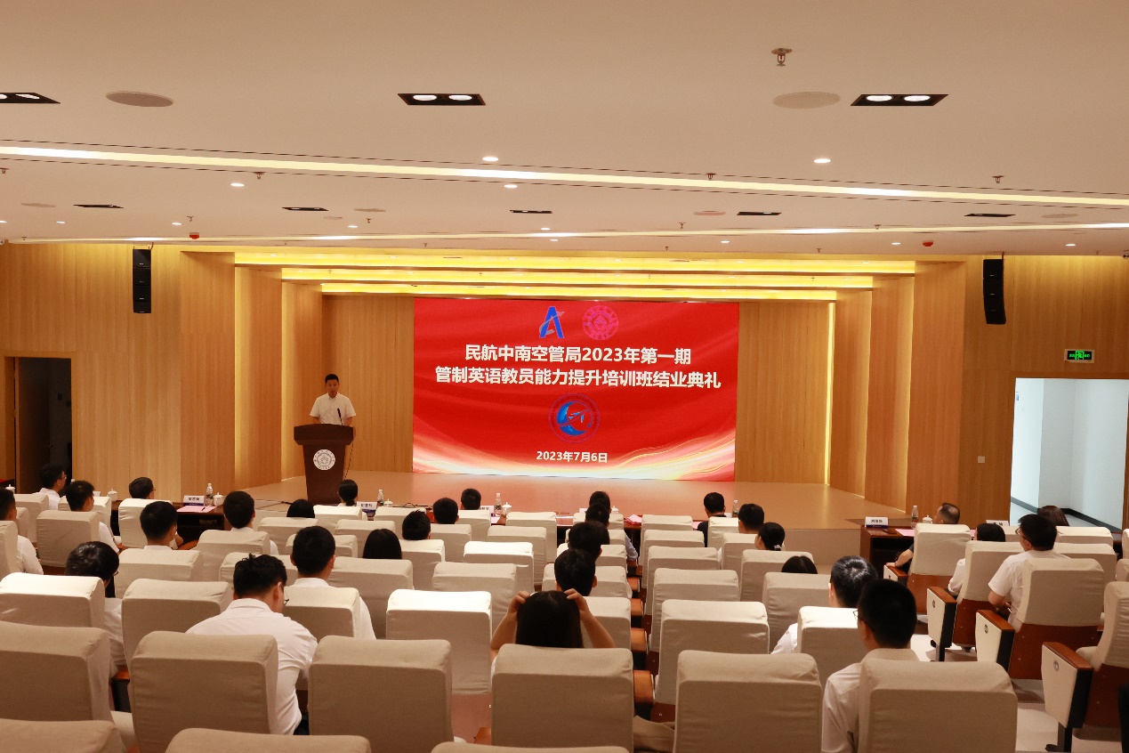 7月6日上午,培训班结业典礼在民航学院报告厅隆重举行,我校党委副书记刘宇雷、民航中南空管局副局长廖超豪、民航学院院长孙建红、副院长田勇、院校教师、中南空管局管制员等参加结业典礼,仪式由中南空管局培训中心副主任曹亮主持。
