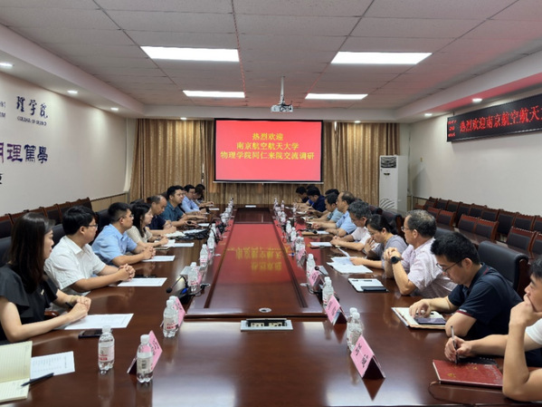 座谈中,肖军强对513所的发展趋势、科研方向、人才需求进行了介绍,并作为校友分享了自己在南航的学习经历和毕业后发展途径,鼓励同学们增强对物理学科的专业自信心,秉持严谨负责的科研态度和助力航空航天事业的信念感,懂得舍取,脚踏实地。陈修文表示感谢并介绍了本次走访的目的和意义,他指出513所研究方向与学校背景、学院学科关联十分紧密,未来希望能够在现有基础上继续加强合作,向国防单位优先、重点输送人才。刘友文就学院科研成果、研究生导师队伍、博士后流动站建设进行了详细介绍。王亚鹏和张霞围绕高校人才培养、企业用人需求、校企合作协同育人等方面展开深入交流。