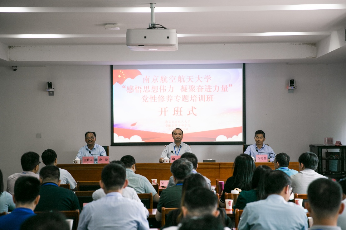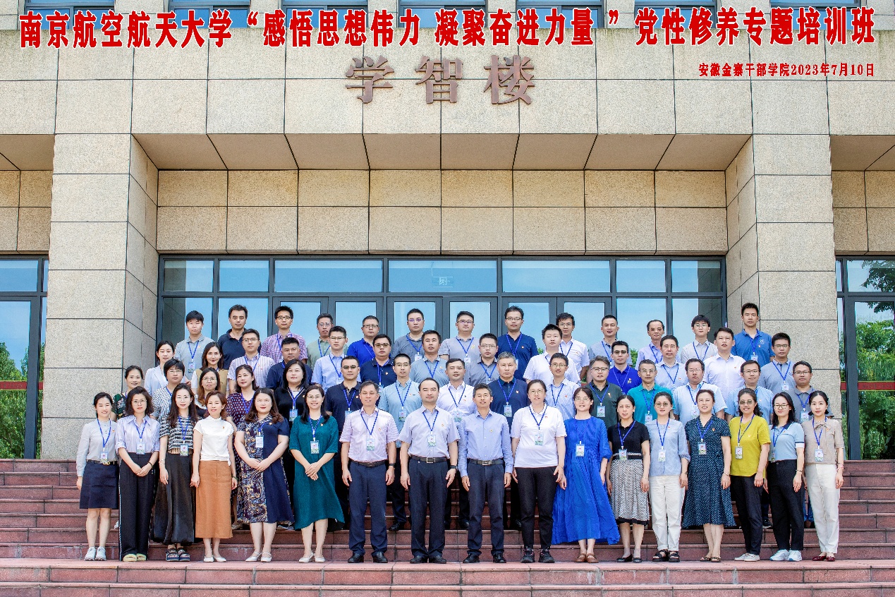 开班仪式上,查德金致欢迎词。陶勇作开班动员讲话。他指出,金寨不仅是中国革命的重要策源地,也是人民军队的重要发源地,蕴含着党在革命、建设、改革各个时期的宝贵精神财富。他强调,各党员同志要提高政治站位,深化思想认识,要在学习金寨从革命老区到美丽乡村的发展历程中,深刻思考体悟习近平新时代中国特色社会主义思想的真理力量,更加坚定地传承和弘扬好金寨革命精神。他要求,各党员同志要结合主题教育总要求,在学思想中不断筑牢理想信念根基,在强党性中坚决贯彻党的群众路线,在重实践、建新功中发扬斗争精神,勇于担当作为,弘扬好革命前辈们革命加拼命的精神,赓续好南航的红色基因和优良办学传统,切实将党性教育成效转化为推动学校加快建设“三航”特色鲜明世界一流大学的坚强保证。查德金为培训班授班旗。