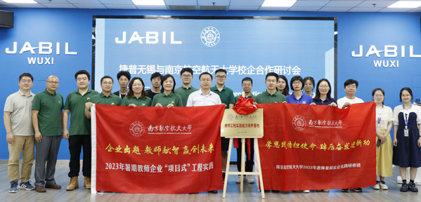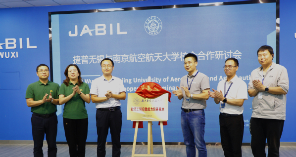 7月18日,“南航-捷普”智能决策与风险分析教师工程实践能力培养基地在捷普电子(无锡)有限公司(以下简称捷普无锡)正式揭牌,标志着由经济与管理学院负责的2023年暑期教师捷普无锡“项目式”工程实践顺利开班。参加揭牌仪式的有我校教师发展与教学评估中心主任朱建军、我校经济与管理学院党委副书记胡苹、副院长欧阳林寒、捷普无锡运营副经理刘华平、高级人事经理潘召泉、研发部项目管理经理黄苑杰以及我校经济与管理学院、电子信息工程学院15名参训教师、捷普无锡各部门领导等30余人。