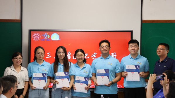 纳松介绍了平坝区的相关情况,对南航研支团历届成员自觉遵守纪律、服从组织安排、主动担当作为的突出表现和优异成绩给予高度的肯定。他表示,项目办将继续以实际行动全力保障和支持南航研支团的工作,希望双方在校地共建、合作育人等方面有更多合作,共同为建设平坝航空产业城贡献力量。纳松和郭萧为第24届研支团贵州分队成员赠送纪念画册。中国航发贵州黎阳航空动力有限公司团委书记尹先波向第25届研究生支教团成员表示热烈欢迎,并代表黎阳航发向新成员发放爱心物资。