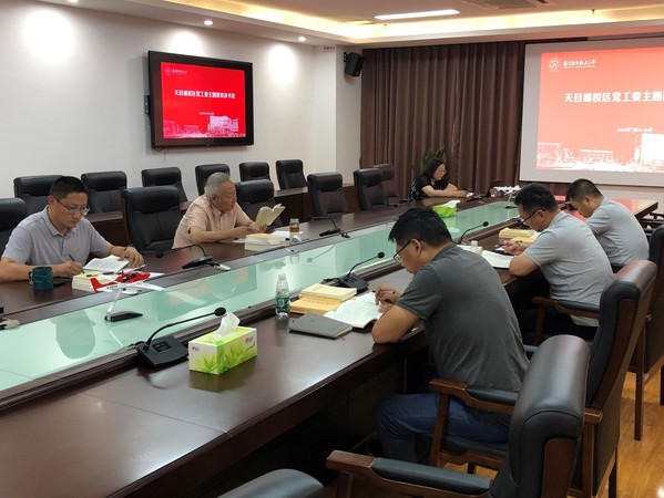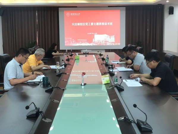 为深入开展学习贯彻习近平新时代中国特色社会主义思想主题教育,天目湖校区党工委分别于7月25日和7月26日开展了第四期、第五期主题教育专题读书班。校区党工委理论学习中心组成员、组织员参加此次活动。会议由校区党工委书记王伟华主持。