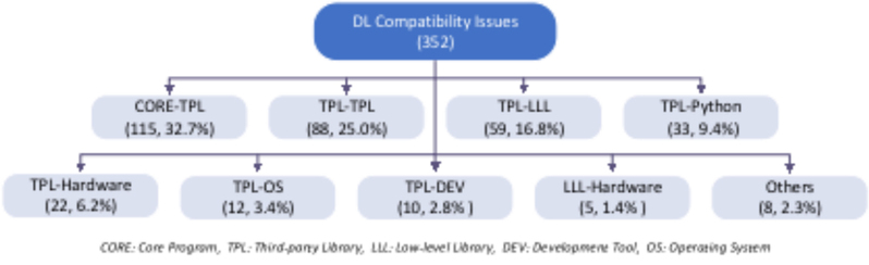 论文《Compatibility Issues in Deep Learning Systems: Problems and Opportunities》基于Stack Overflow开发者问答讨论数据对深度学习软件系统中出现的兼容性问题进行了一项大规模实证研究。深度学习软件系统是复杂的组件化系统,由核心程序(代码实现和数据)、Python(语言和解释器)、第三方库、低级库、开发工具、操作系统和硬件环境组成。组件之间的不兼容交互会导致兼容性问题,严重阻碍开发和部署过程。深度学习软件系统中经常出现哪些类型的兼容性问题?这些问题的根本原因是什么,开发人员如何解决它们?我们距离自动检测和修复深度学习软件系统兼容性问题还有多远?然而,这些问题尚未得到系统化地探索。为此,该工作从深度学习软件系统不同组件之间交互的角度,给出了兼容性问题的类型定义及分布,并分类探讨了兼容性问题产生的根本原因、影响以及相应的解决方案。同时,通过系统性地调研当前相关兼容性问题自动检测和修复工具的研究现状,给出了自动检测和修复深度学习软件系统兼容性问题还存在的挑战。该研究成果将有助于理解深度学习软件系统兼容性问题的产生机理,为后续相关工具开发提供指导。该论文已被CCF A类国际会议ESEC/FSE 2023录用,第一作者为我校2022级硕士研究生王君,指导老师及通讯作者为肖冠平讲师。
