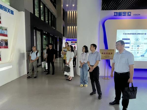 7月14日上午,调研团队前往华中科技大学光学与电子信息学院,光电院副书记、副院长张敏明、副院长聂明局代表学院欢迎调研团一行。调研团首先参观了武汉光电国家研究中心,在座谈会上,孙占久介绍了此次调研学习的主要背景,张敏明围绕新工科建设主题做了专题经验分享,双方围绕人才培养、党建工作、国家级平台运行、团队建设、人事制度等方面工作进行了交流。