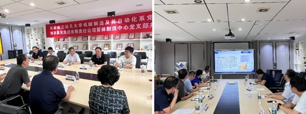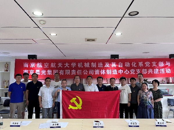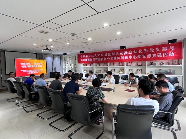 为深入学习贯彻党的二十大精神,推进学习贯彻习近平新时代中国特色社会主义思想主题教育走深走实,进一步拓展校企合作新思路、新模式,7月22日下午,南京航空航天大学机电学院机械制造及其自动化系党支部与南京晨光集团有限责任公司箭体制造中心党支部联合开展“党建引领·校企协同促进国防现代化建设”支部共建活动。机械制造及其自动化系教师党支部与南京晨光箭体制造中心党支部党员参加。活动由机械制造及其自动化系党支部书记李寒松主持。