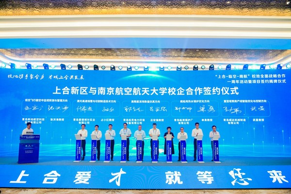 现场,临空经济示范区专家咨询委员会成立并为首批委员颁发了聘书;我校学生处被授予“胶州市引才工作站”;德固特等6家企业被授予“南京航空航天大学就业实习实践基地”;少海文化等4家单位被授予“南京航空航天大学外国留学生实践基地”。此外,推进会上还发布了南京航空航天大学-上合新区校地协同创新中心建设方案,中心位于临空服务中心,将充分发挥校地桥梁节点作用,重点建设上合科技成果转化平台、产学研合作示范基地、人才引育基地,提供快捷、高效、精准的一站式服务,打通科技成果转化“最后一公里”。