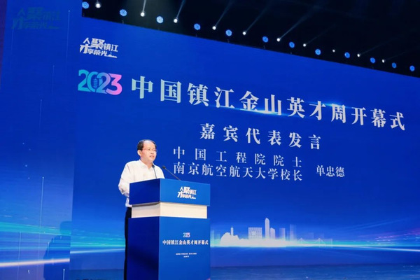 近日,2023中国镇江金山英才周活动在镇江举行。镇江市委书记马明龙,市委副书记、市长徐曙海,人大常委会主任李健,政协主席郭建,江苏省委组织部副部长季振华等领导嘉宾出席开幕式。校长单忠德院士受邀出席开幕式,并作为嘉宾代表发言。