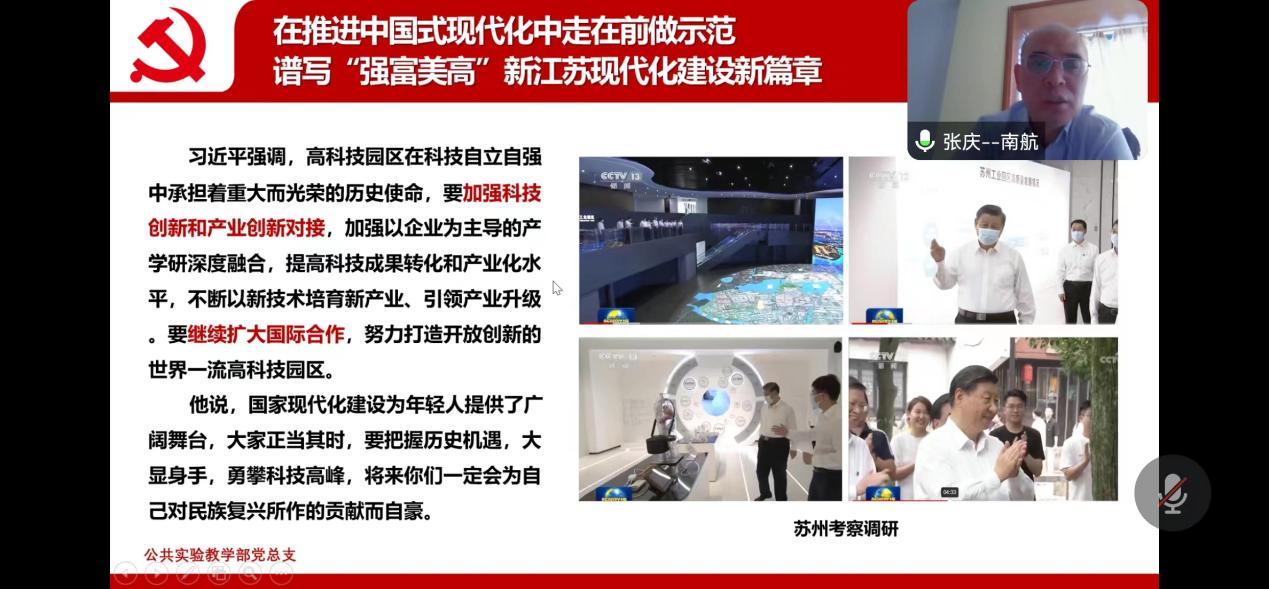 张庆重点领学了习近平总书记《给“科学与中国”院士专家代表的回信》和习近平总书记在江苏考察时的重要讲话精神。总书记在回信中指出了科学普及是实现创新发展的重要基础性工作,强调要带动更多科技工作者支持和参与科普事业,促进全民科学素质的提高。在江苏考察时强调,要完整准确全面贯彻新发展理念,继续在改革创新、推动高质量发展上争当表率,在服务全国构建新发展格局上争做示范,在率先实现社会主义现代化上走在前列,奋力推进中国式现代化江苏新实践,谱写“强富美高”新江苏现代化建设新篇章。
