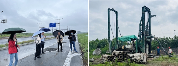 冒雨协调推进江北项目前期工作、试桩施工现场