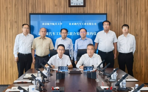 近日,我校与比亚迪集团在深圳举行新能源汽车工程技术联合实验室共建签约仪式。1983级校友、比亚迪集团首席科学家、汽车总工程师、汽车工程研究院院长廉玉波,校长单忠德院士,副校长黄志球,校长助理、党政办公室主任张启钱出席签约仪式。