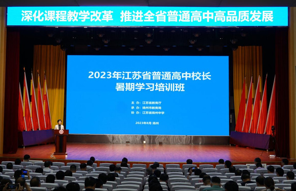 近日,2023年江苏省普通高中校长暑期学习培训班在扬州举行。教育部基础教育司一级巡视员于长学,江苏省教育厅厅长、党组书记、省委教育工委书记江涌出席活动。我校校长单忠德院士受邀出席并作专题报告。