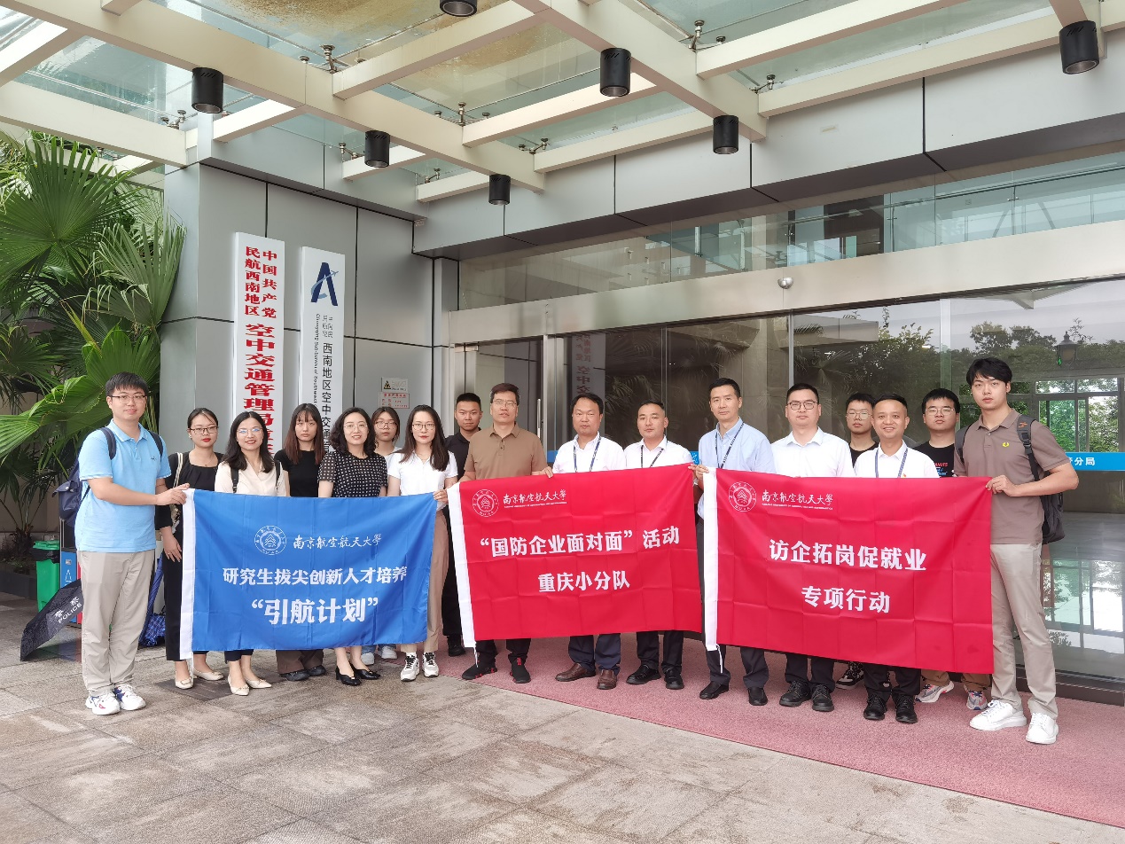 调研团先后走访了兵器装备集团重庆长安望江工业有限公司、兵器工业集团重庆建设工业(集团)有限责任公司、中国民用航空西南地区空中交通管理局重庆分局、重庆机场集团、工业和信息化部电子第五研究所西南分所。兵器装备集团重庆长安望江工业有限公司党委副书记李年明、兵器工业集团重庆建设工业(集团)有限责任公司人力资源部副部长李小刚、中国民用航空西南地区空中交通管理局重庆分局局长陈立、重庆机场集团人力资源部副总经理姜胤、工业和信息化部电子第五研究所西南分所总经理助理伍昆仑等领导参加。调研团一行通过情景研学,深入学习军工文化和民航精神,激发学生挺起“军工脊梁”,铸牢“信念灯塔”,坚定航空报国志向;通过座谈交流,了解行业发展现状及人才需求情况,听取各单位对我校学生专业教育、素质能力培养等方面的意见和建议。座谈会上,校企双方围绕目标定位、人才培养、就业指导、产学研合作等方面进行了充分交流,双方一致表示,希望通过访企拓岗促就业行动,建立三大机制:一是常态化沟通交流的机制,不断探索合作的发力点、耦合点、融合点;二是人才培养合作的机制,打通学生职业发展通道,开展校企宣讲周、企业开放周、实习实践周和入职适应周;三是科研创新的机制,以“挑战杯”、“互联网+”等比赛为契机,实现党建思政和科技业务充分融合。