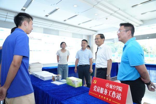 在航空学院、能源与动力学院、机电学院、长空学院等迎新点,单忠德代表郑永安书记和学校党政领导班子向参加迎新工作的师生员工表示慰问,看望前来报到的新同学及家长并进行亲切交流。他仔细询问迎新准备及新生现场报到情况,对开学各项准备工作给予充分肯定,并表示各单位要进一步落实落细新生报到各项准备工作,认真细致做好服务保障,提前做好强降雨、高温等方面应急预案,确保新生报到和学生返校工作平稳有序。