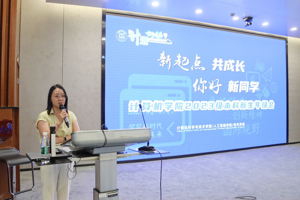 为扎实做好新生入学教育工作,帮助2023级本科新生了解校园文化,尽快适应大学生活,明确未来学习生活的重心,激发学习内驱力,以良好精神面貌投入新学期的学习生活,8月30日,计算机科学与技术学院/人工智能学院/软件学院“新起点共成长,你好新同学”2023级本科新生主题年级会于天目湖校区巡天楼1楼报告厅顺利开展,院党委副书记王宁、教学办主任林卉、辅导员和教务员以及全体2023级本科生参会。