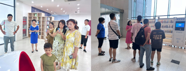 此次参观活动沉浸式地带领学生、家长感受图书馆的细致服务及智慧化建设。学生、家长了解了图书馆建设概况、馆藏资源情况、智慧图书馆建设情况后,还现场学习体验了RFID自助借还机、瀑布流、智慧书架、自助查询机和静音舱等现代化设施。到馆参观的学生、家长感受到了来自图书馆的热情欢迎,并对图书馆温馨的读书氛围、智慧化的设施赞叹不已。