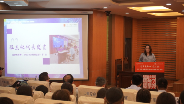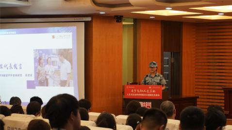 王洋从“同路人”“知心人”“过来人”三个角度,鼓励同学们不仅要扎实学识、内外兼修,更要在实践中提高核心竞争力,创造属于自己的精彩人生。本科生高思源、研究生丁海洋代表人文学院2023级全体新生表达了对未来学习和生活的憧憬与期盼。
