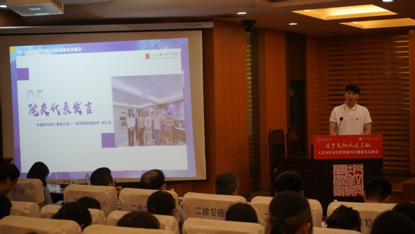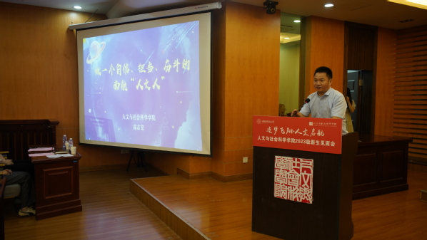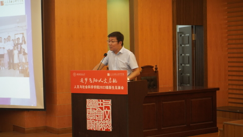 见面会在学院宣传片中拉开序幕。高志宏代表全院师生向2023级新同学表达了热烈欢迎和诚挚祝贺。高志宏以“做一个自信、担当、奋斗的南航‘人文人’”为题,勉励同学们要有身为南航“人文人”的身份自信和专业自信;要肯担当,面对困难不低头、面对挫折不松劲、面对失败不失意;要能奋斗,不躺平、不哀怨,不自暴自弃、不斤斤计较,不为了暂时的挫折而颓废,要在奋斗路上拼尽全力。他祝愿同学们在人文学院放飞梦想,健康成长、学有所成。