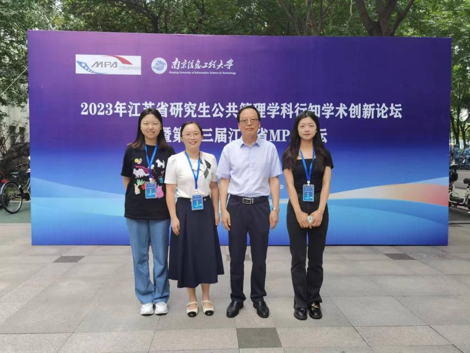 2023年江苏省研究生公共管理学科行知学术创新论坛暨第十三届江苏MPA论坛于8月25-26日在南京召开。论坛由江苏管理学类研究生教育指导委员会主办,江苏公共管理学科联盟、江苏MPA论坛组委会和南京信息工程大学承办。我校人文与社会科学学院教授张勤、讲师孙秋芬以及研究生代表张亚楠、魏嘉欣参加本次论坛。学院师生撰写的四篇专业论文荣获本次论坛“优秀论文三等奖”。