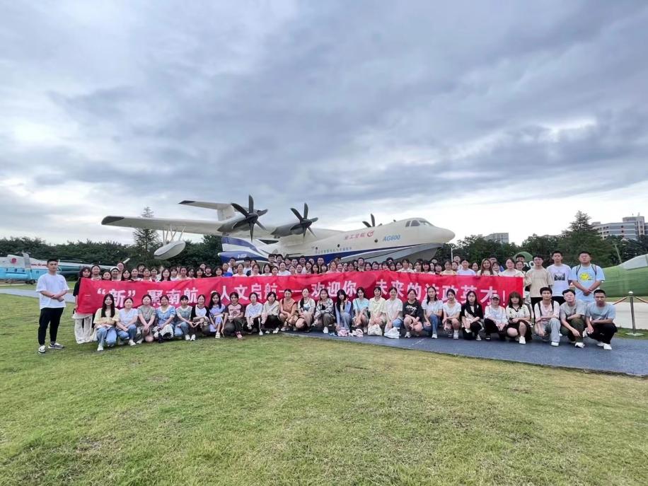 聚焦“归属感”,“三航”特色实景体验。为了进一步让新生了解南航、融入南航,强化文科生对“航空航天民航”的认识与了解,突出“三航特色”、厚植“人文情怀”,学院面向全体新生,组织开展“‘新’聚南航,人文启航”沉浸式交流活动,集体参观御风园、校园法治文化馆、人文学院楼等,各班分别召开新生第一次班会、第一次课题组会,通过丰富的集体活动增强对南航的归属感和荣耀感,以及对国防事业的责任感和使命感。