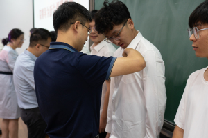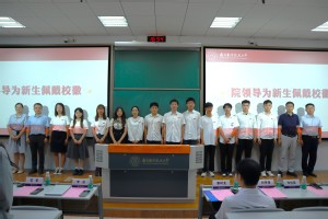 紧接着,院领导们为新生代表佩戴校徽,台下全体新生共同佩戴校徽,宣告正式成为一名南航研究生。