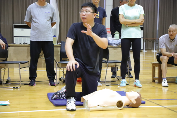 为进一步推进体育部应急管理体系建设,提高全体教师的的急救知识水平与急救应用能力,增强师生的安全意识,9月5日上午,体育部在将军路校区体育馆二楼篮球馆,组织开展了新学期CPR肺复苏急救培训活动,全体教职工参加。