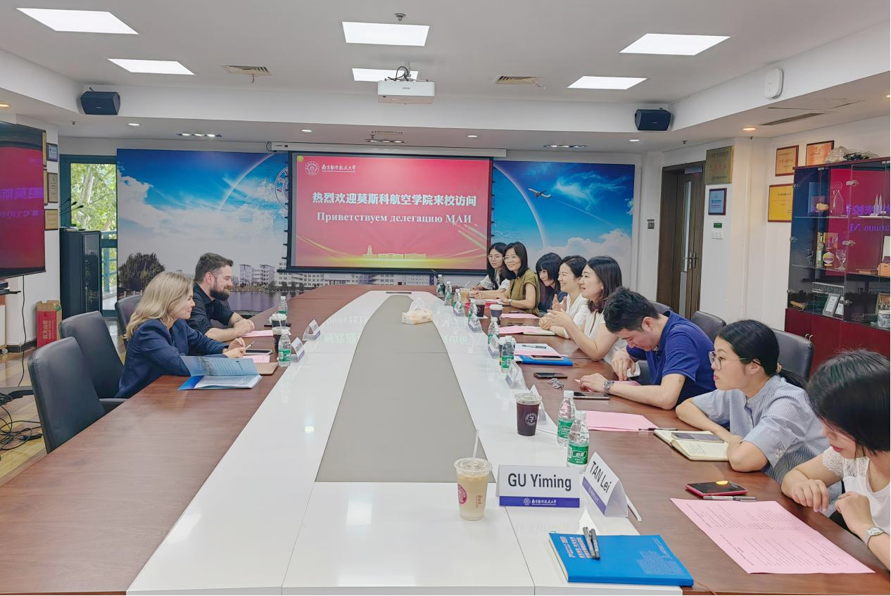 9月8日,莫斯科航空学院(以下简称“莫航”)国际合作处副处长Anastasia Kovaleva、航空学院教育合作项目主管Ilia Konstantinov访问我校。国际合作处副处长沈敏、航天学院副院长王寅及相关工作人员与外方会见并座谈。会议由国际合作处项目科科长单晶主持。