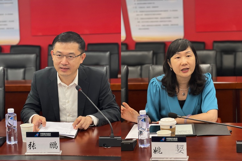 为推进落实学校与中国南方航空集团有限公司(以下简称“中国南方航空”)战略合作框架协议,9月12日,通用航空与飞行学院院长王勤带队赴中国南方航空进行工作交流。中国南方航空人力资源部副总经理张鹏、飞行总队党委副书记姚㛃,学院副院长司海青参加交流会。
