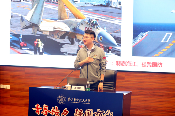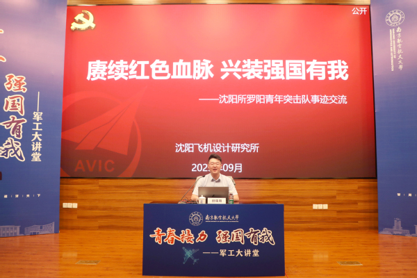 弘扬罗阳精神,凝聚报国力量。9月13日,我校举办“青春接力、强国有我”军工大讲堂。航空工业沈阳飞机设计研究所“罗阳青年突击队”队长班瑞阳讲授了题为《赓续红色血脉,兴装强国有我》的专题报告。航空工业沈阳飞机设计研究所工程师汤欣宁,我校长空学院常务副院长蒋彦龙、副院长张林,学生处副处长佘明等400余名师生代表参加活动,报告会由长空学院2023级本科生辅导员薛雨主持。