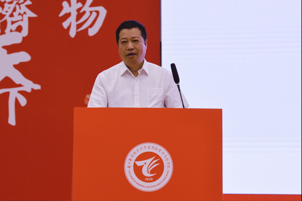 飞行技术系主任高振兴作为新生班主任代表发言。他结合自身“学在机务、教在飞行、研在民航”的经历,激励同学们走出舒适区,迎接新挑战,努力追求梦想,保持身心健康,坚持终身学习,热爱生活,热爱社会。